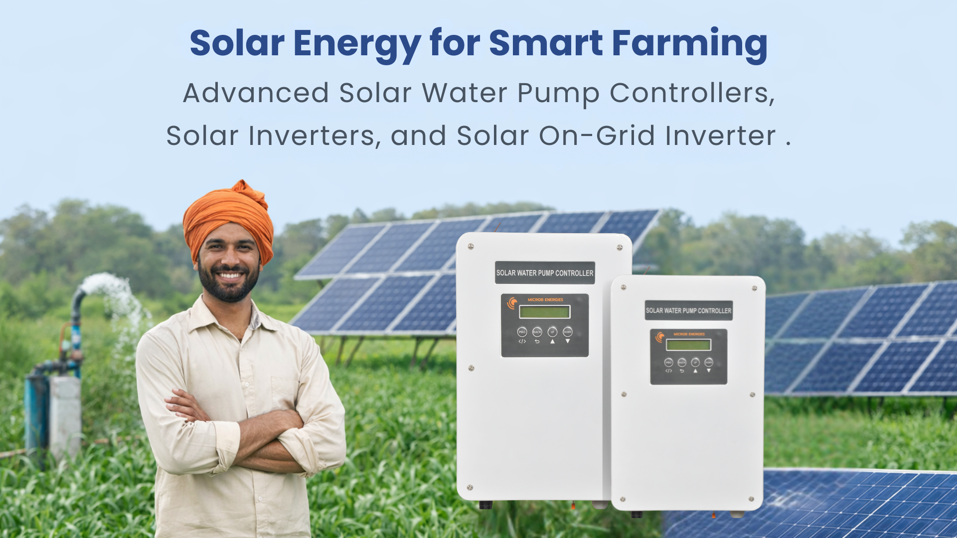 Microb Energies is committed to delivering reliable and efficient solar solutions for homes, farms, and businesses. We specialize in solar water pump inverters/Controller , on-grid solar Inverter, and rooftop solar installations that help reduce electricity costs while promoting clean and sustainable energy.